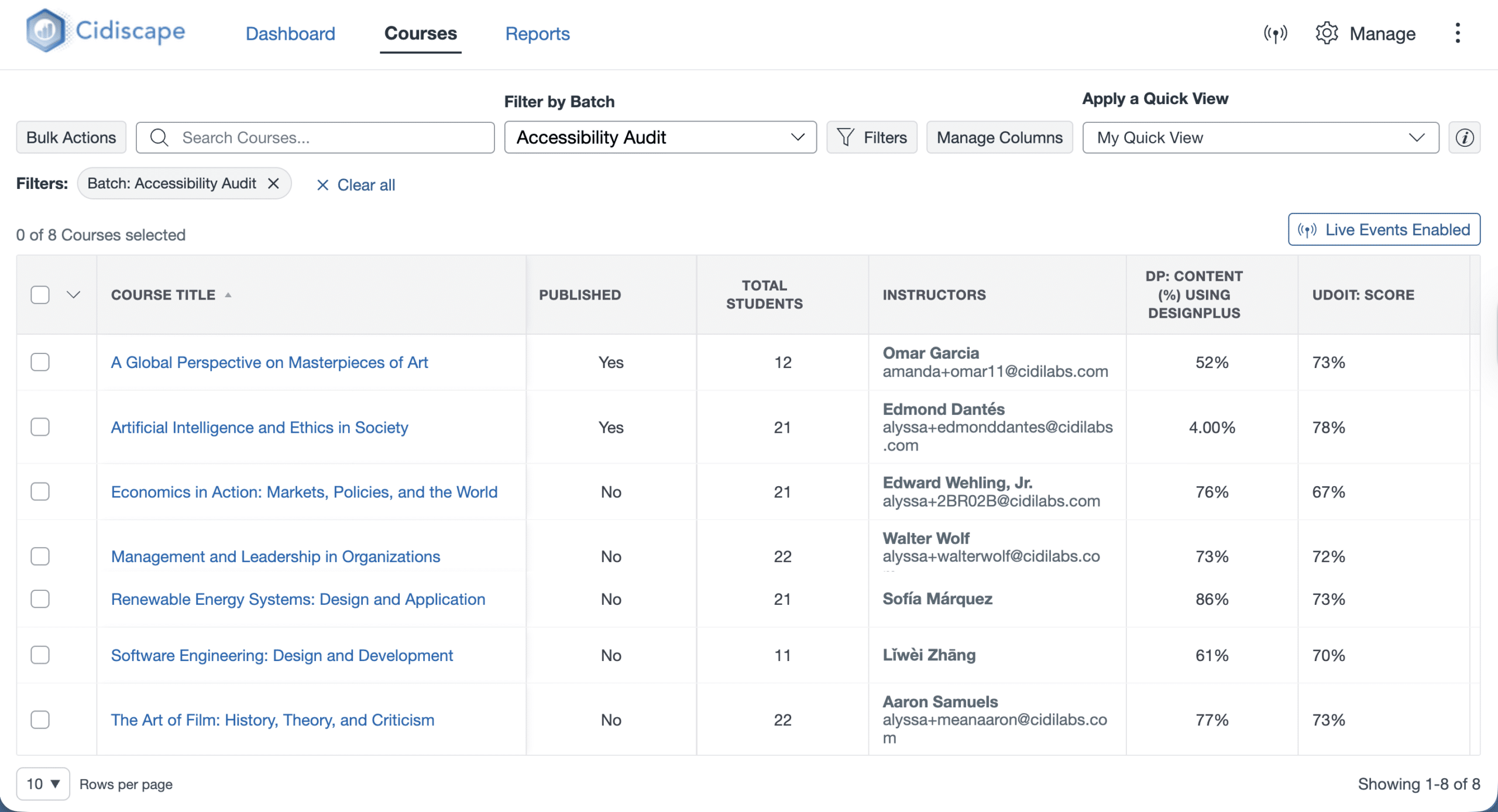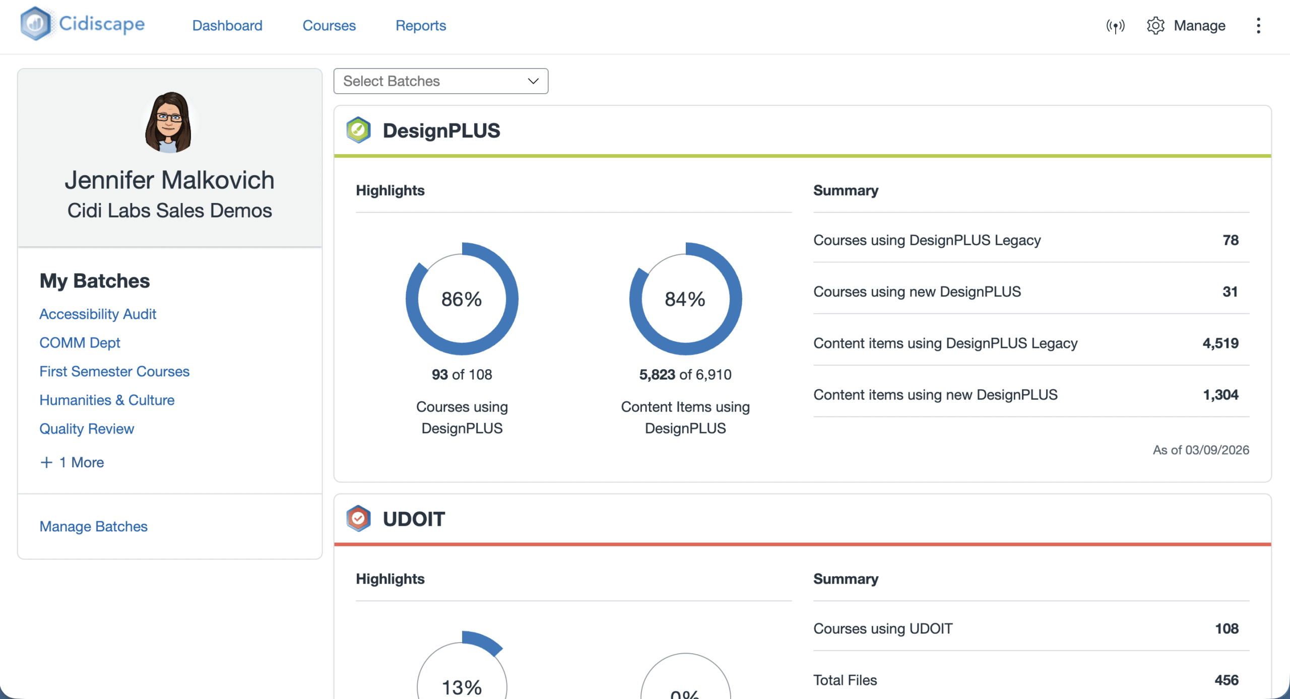 Cidiscape helps you move beyond guesswork by delivering clear, customizable reporting for DesignPLUS, UDOIT, and TidyUP so you can understand usage, make data-informed decisions, track progress, and support your teams.
