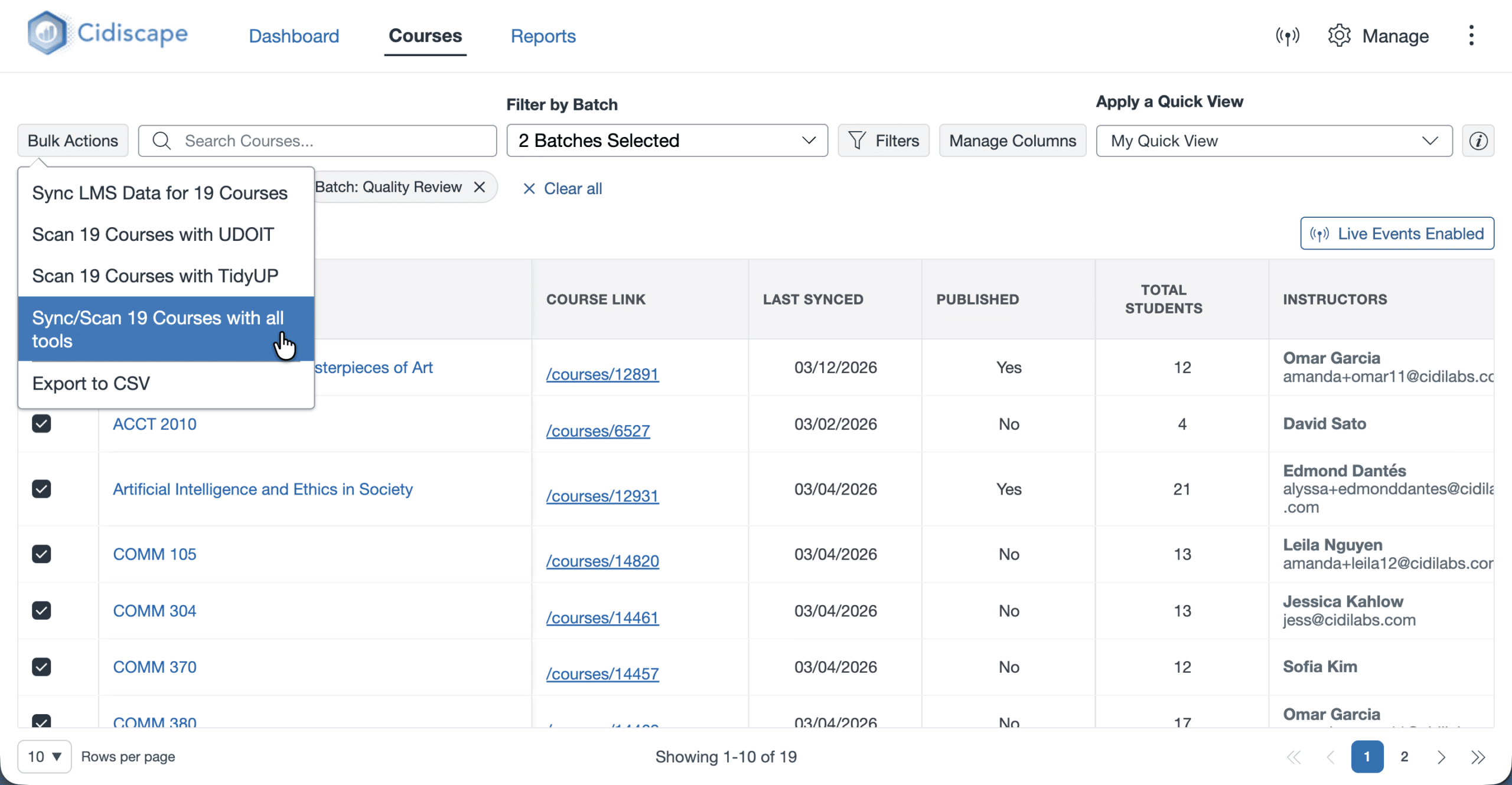 Cidiscape makes it easy to understand how your Cidi Labs tools are being used across custom groups of Canvas courses.